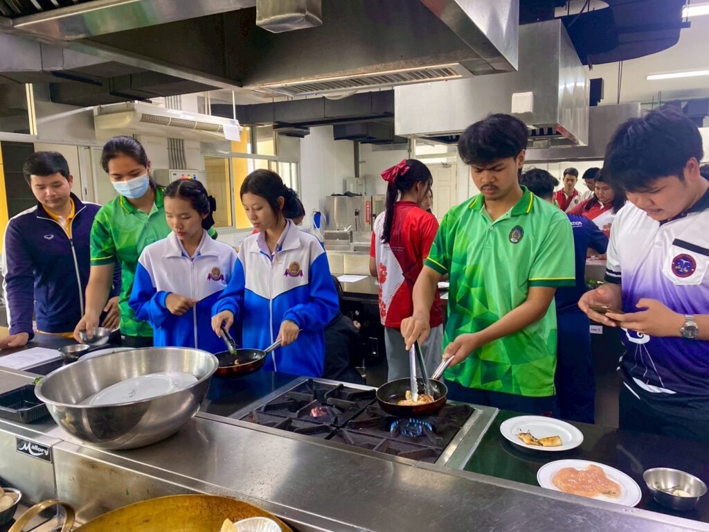 วันที่ 4 กุมภาพันธ์ 2569 งานหอพักนักศึกษา กองพัฒนานักศึกษาจัดอบรมหลักสูตรอาชีพระยะสั้นการทำสเต็ก โดยมีกลุ่มเป้าหมายผู้เข้าอบรมเป็นนักศึกษาหอพักจำนวน 25 คน หลักสูตรการทำสเต็กได้รับเกียรติจากอาจารย์นราธร สัตย์ซื่อ ประธานสาขาวิชาเทคโนโลยีและศิลปะการประกอบอาหาร คณะวิทยาศาสตร์และเทคโนโลยีเป็นผู้สอนพร้อมด้วยนักศึกษาสาขาวิชาเทคโนโลยีและศิลปะการประกอบอาหารร่วมเป็นพี่เลี้ยงในการอบรมให้แก่นักศึกษา อบรม ณ ห้องปฏิบัติการโรงเรียนการอาหารนานาชาติเพชรบุรี ซึ่งในหลักสูตรนี้นักศึกษาหอพักจะได้เรียนรู้วิธีการทำสเต็ก 2 แบบ ได้แก่สเต็กพอคชอปหมูซอสพริกไทยดำและสเต็กอกไก่ซอสเห็ด โดยอาจารย์วิทยากรและนักศึกษาพี่เลี้ยงจะทำหน้าที่ให้ความรู้ด้านเทคนิควิธีการ และดูแลทุกขั้นตอนการประกอบอาหารอย่างใกล้ชิด ซึ่งนักศึกษาหอพักจะได้ลงมือปฏิบัติจริงกับวัตถุดิบที่ใช้เป็นส่วนประกอบ อาทิ การหมักเนื้อสัตว์ การปรุงซอสรสชาติต่างๆ กรรมวิธีในการย่างเนื้อสัตว์และการทำปลาทอดพิซแอนด์ชิฟ โดยตลอดการอบรมนักศึกษามีความสนุกสนานกับการประกอบอาหารและให้ความสนใจในการทำเป็นอย่างดี ซึ่งหลังจากประกอบอาหารเสร็จสิ้นแล้ว นักศึกษาหอพักที่เข้าอบรมจะได้เรียนรู้วิธีการจัดจานอาหารและได้รับผลงานการประกอบอาหารของตนเองกลับไป