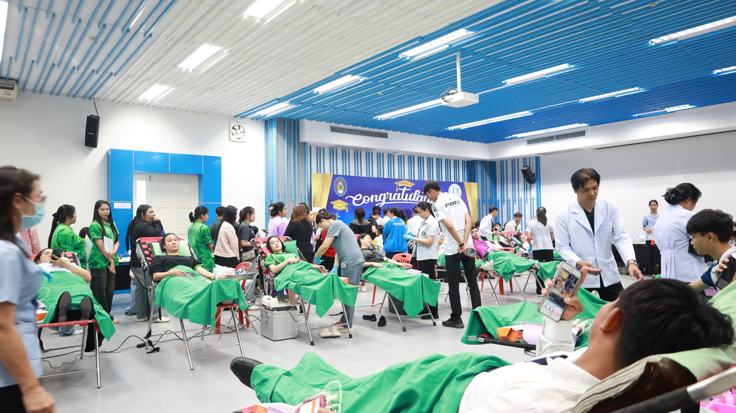 วันที่ 24 ธันวาคม 2568 กองพัฒนานักศึกษาร่วมกับเหล่ากาชาดจังหวัดเพชรบุรี จัดกิจกรรมบริจาคโลหิต ณ ห้องประชุมวรชัยเยาวปราณี คณะเทคโนโลยีสารสนเทศ มหาวิทยาลัยราชภัฏเพชรบุรี โดยมีนักศึกษา บุคลากรและประชาชนทั่วไป ให้ความสนใจ ร่วมบริจาคโลหิต เป็นจำนวน ทั้งสิ้น 136 คน ได้ปริมาณโลหิตจำนวน 61,200 CC และโลหิตที่ได้รับบริจาคในครั้งนี้จะถูกนำไปมอบให้แก่โรงพยาบาลเพื่อใช้ในการช่วยเหลือผู้ป่วยต่อไป